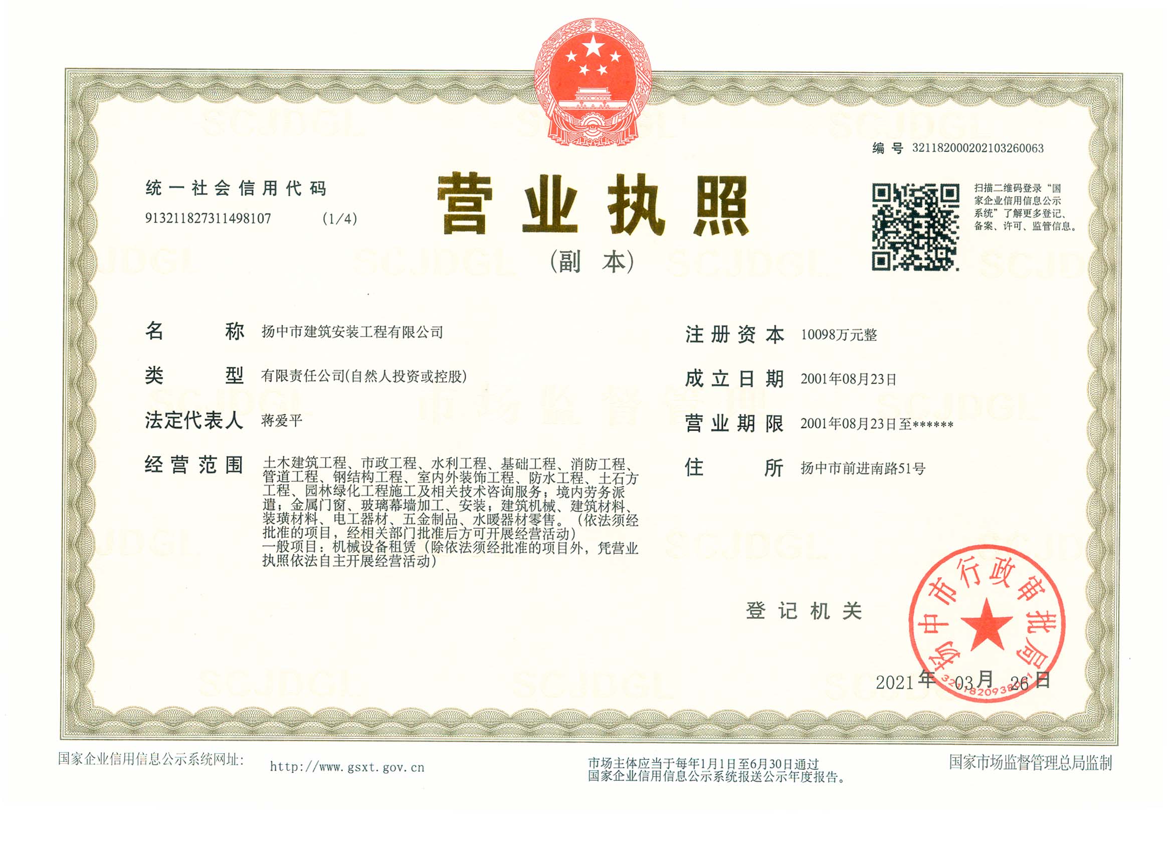 揚中市建筑安裝工程有限公司是房屋建筑工程施工總承包國家一級和市政公用工程施工總承包國家一級資質(zhì)施工企業(yè),并具有地基基礎(chǔ)工程專業(yè)承包、起重設(shè)備安裝工程專業(yè)承包、建筑裝修裝飾工程專業(yè)承包、消防設(shè)施工程專業(yè)承包、建筑機電安裝工程專業(yè)承包、鋼結(jié)構(gòu)工程專業(yè)承包等資質(zhì),在上海、南京、鎮(zhèn)江、蘇州、常州、沭陽、蕪湖、湖北襄陽等地設(shè)有分公司。60多年來,公司承建了一大批工業(yè)與民用建筑,為地方經(jīng)濟和...